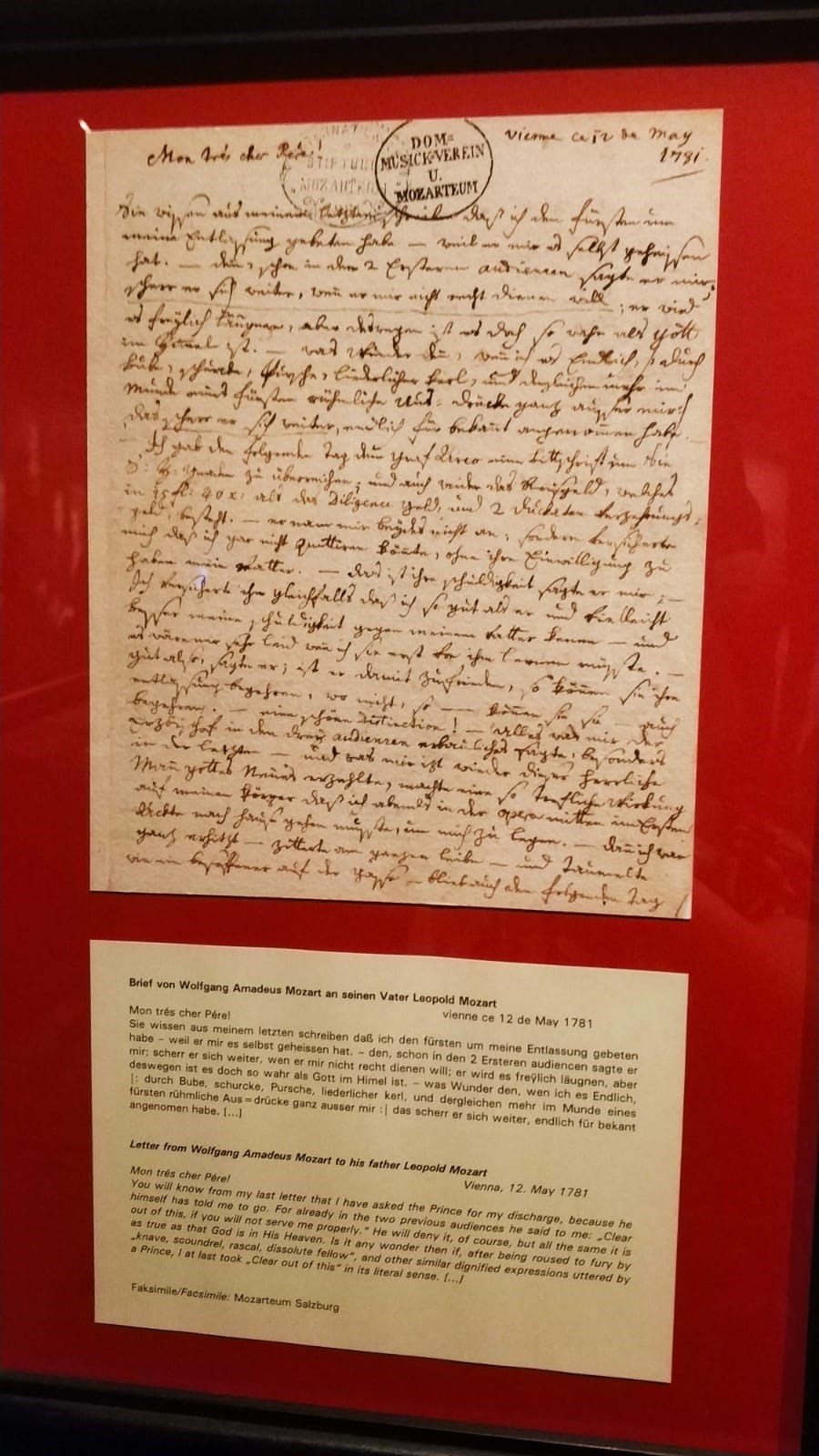 Spodziewałam się chociaż paru przedmiotów osobistych, których Mozart dotykał swymi genialnymi palcami, które to genialne palce potem stukały w klawiaturę fortepianu wyzwalając z niej genialnie piękne dźwięki.