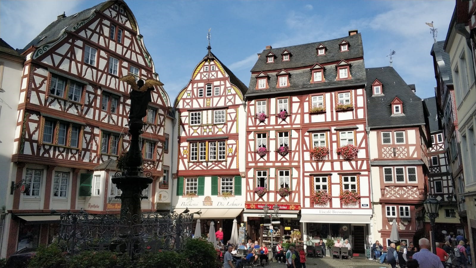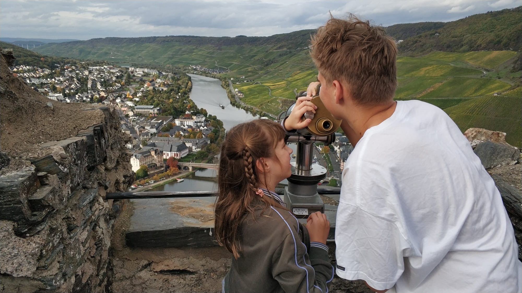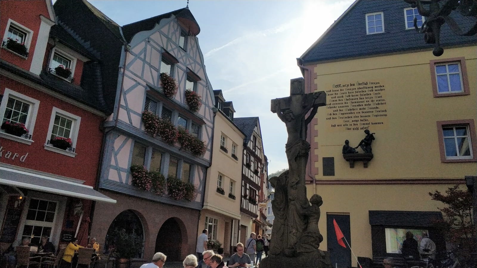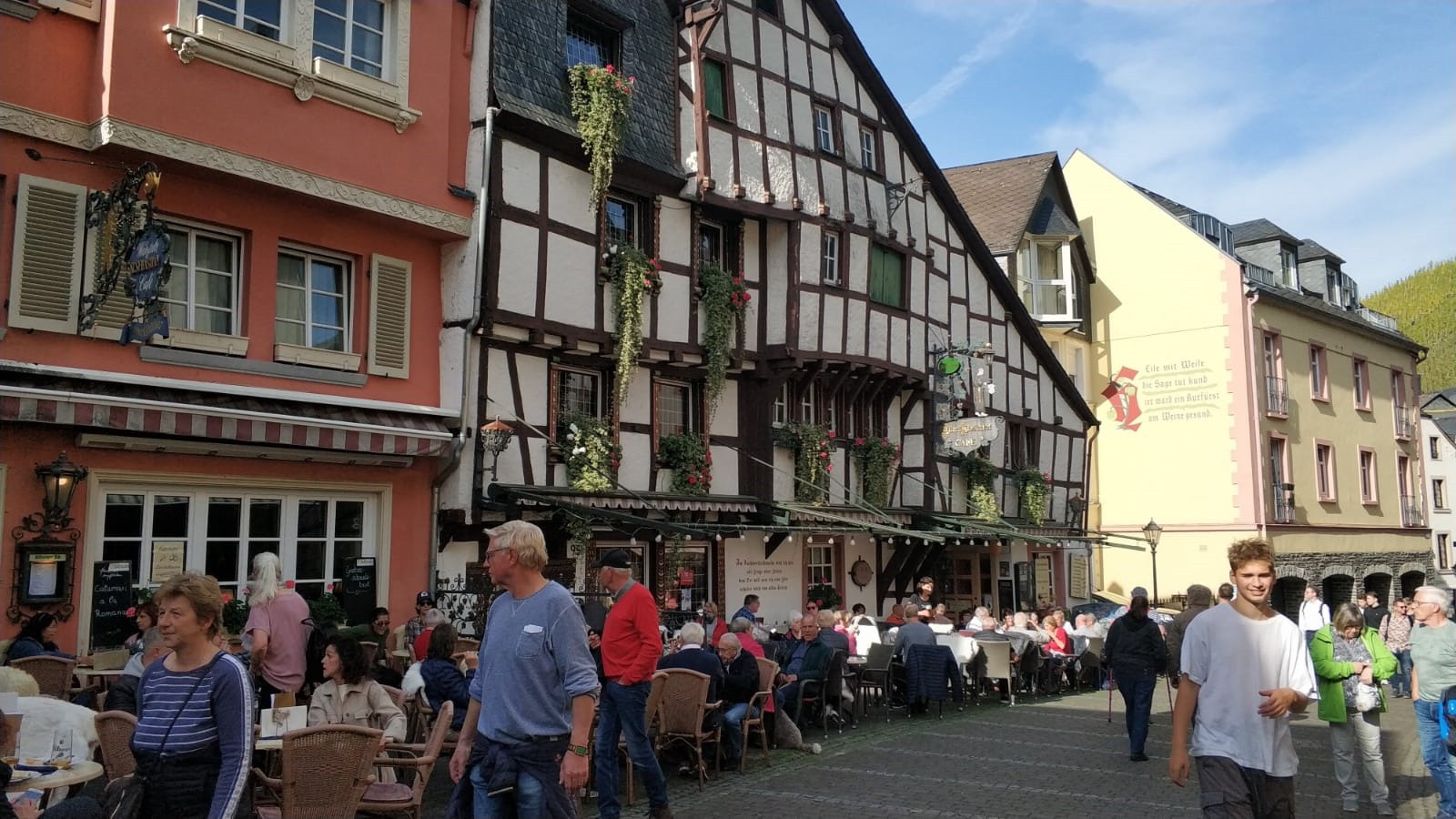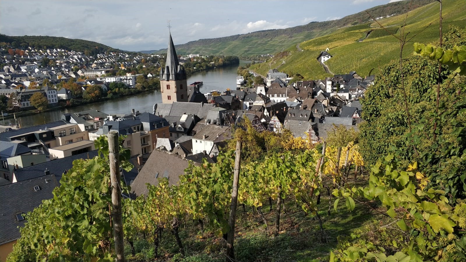 Takie nieco większe i okazalsze Traben – Trarbach, które odwiedziliśmy dzień wcześniej. Nawet genezę ma podobną. Zanim zbudowano drogowy most (1872- 1874), po przeciwległych brzegach Mozeli egzystowały odrębnym życiem: miasteczko Bernkastel i wioska Kues (pol. Kuza). Połączenie obu nastąpiło w 1905 r.