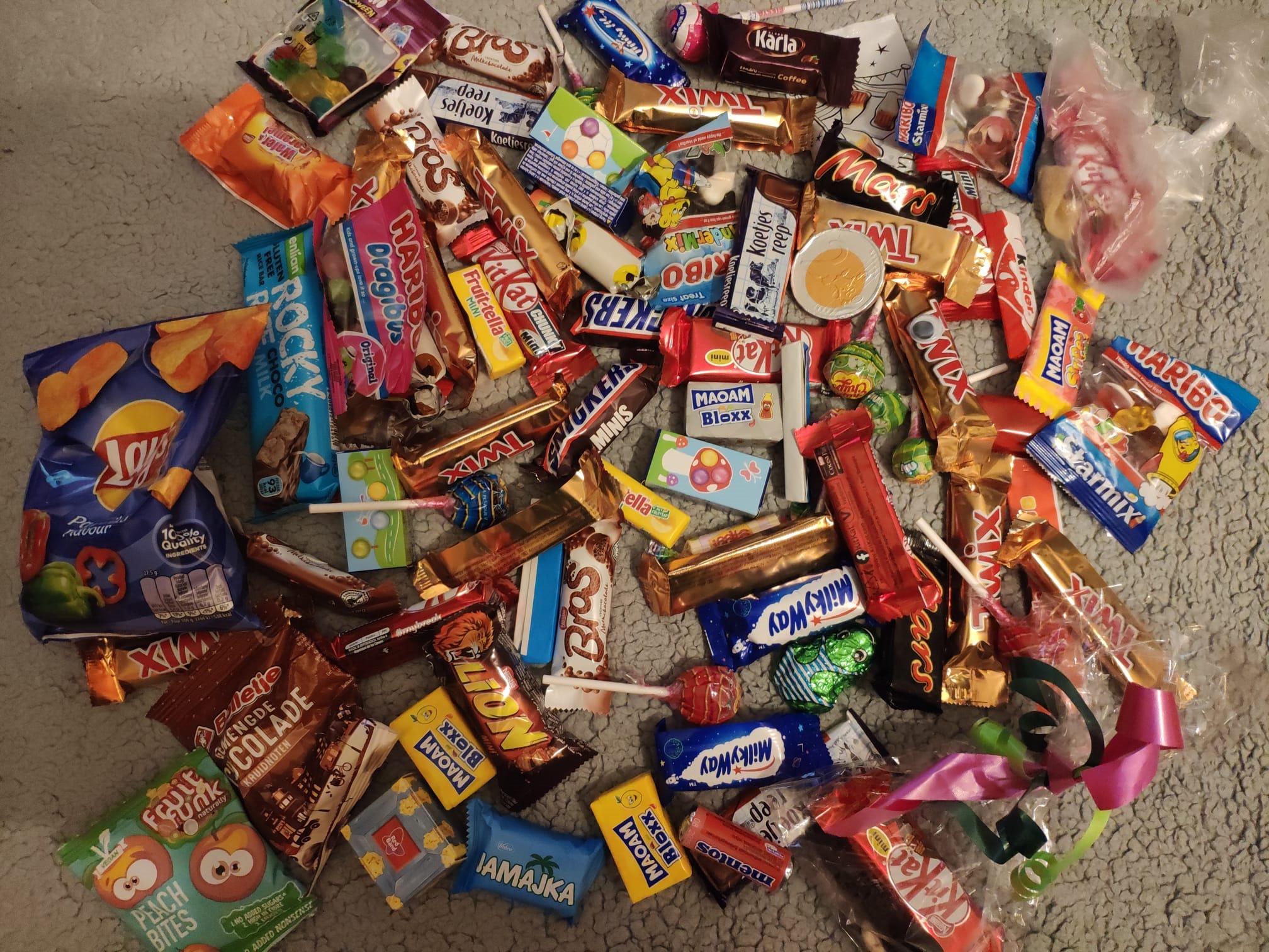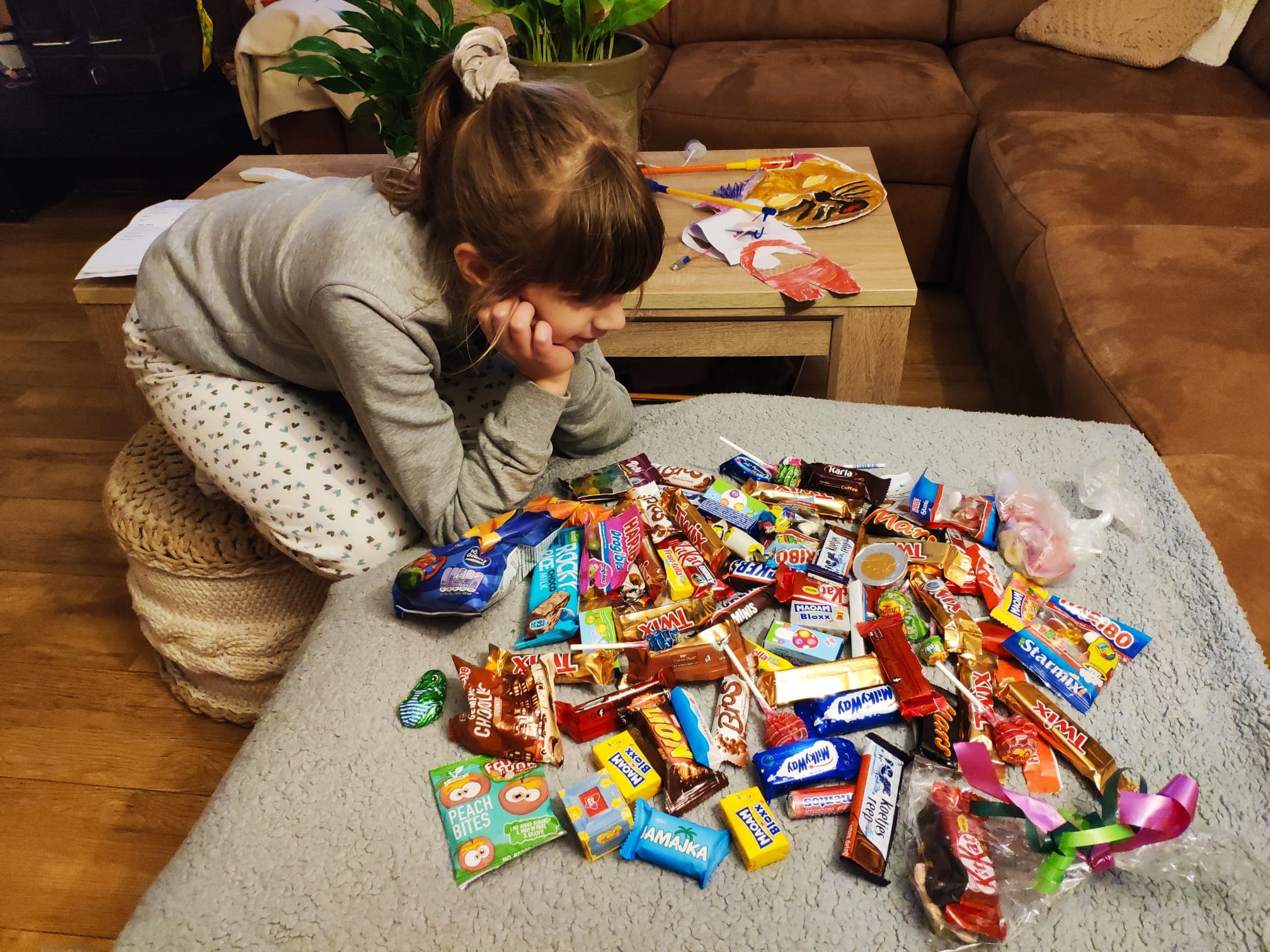 W dwie godziny uzbierali pełną torbę cukierków, batoników, żelków i innych słodkości. Gdy Iskierka zobaczyła ich zdobycze, wydawało się, że przez moment pożałowała swej decyzji o pozostaniu w domu.