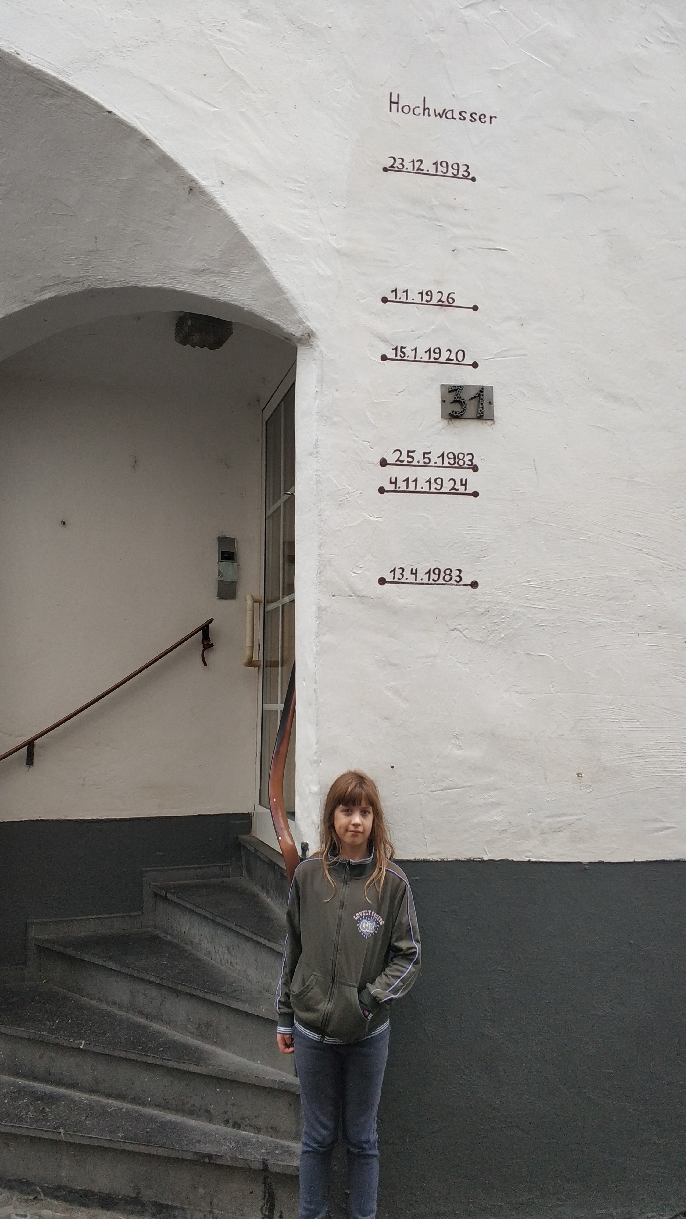 Zaznaczenie kolejnych powodzi na ścianie działa na wyobraźnię, podobnie jest na murach Torunia…