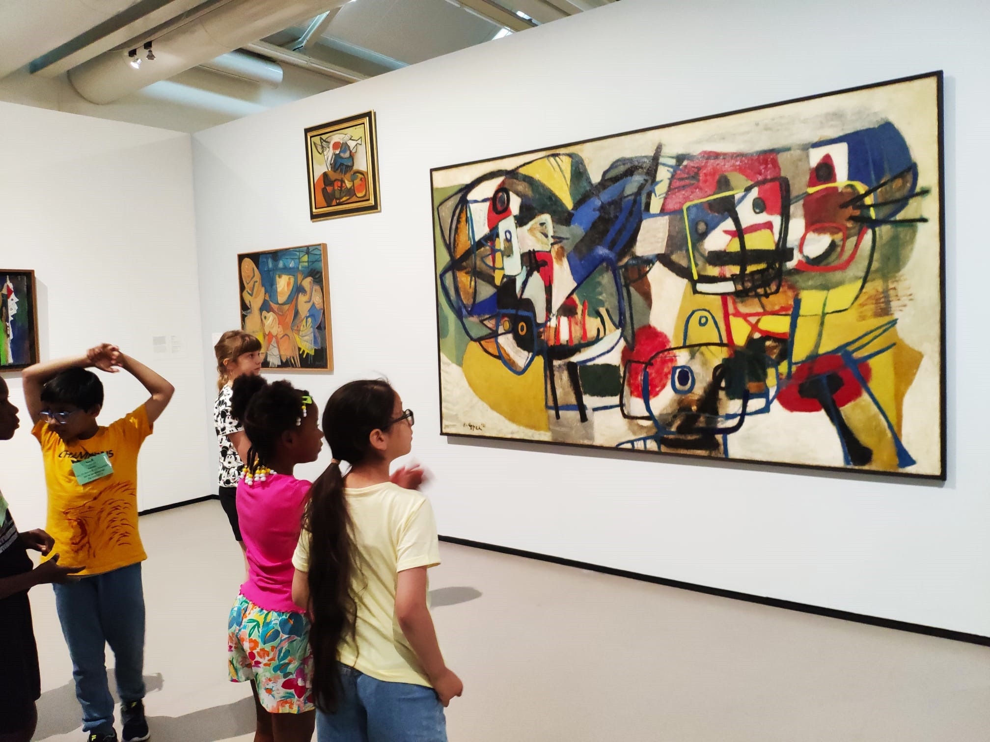 Pan Marcel nie mówił, tylko szeptał. Nie jestem pewna, czy bolało go gardło, czy robił to celowo, by nakłonić dzieci do ciszy. Najważniejsze, że podziałało. Wesoła gromadka wnet się uspokoiła, bo całą energię przekierowała na USŁYSZENIE pana Marcela, który wyjaśniał, oczywiście szeptem, dlaczego muzeum nazywa się CoBrA.