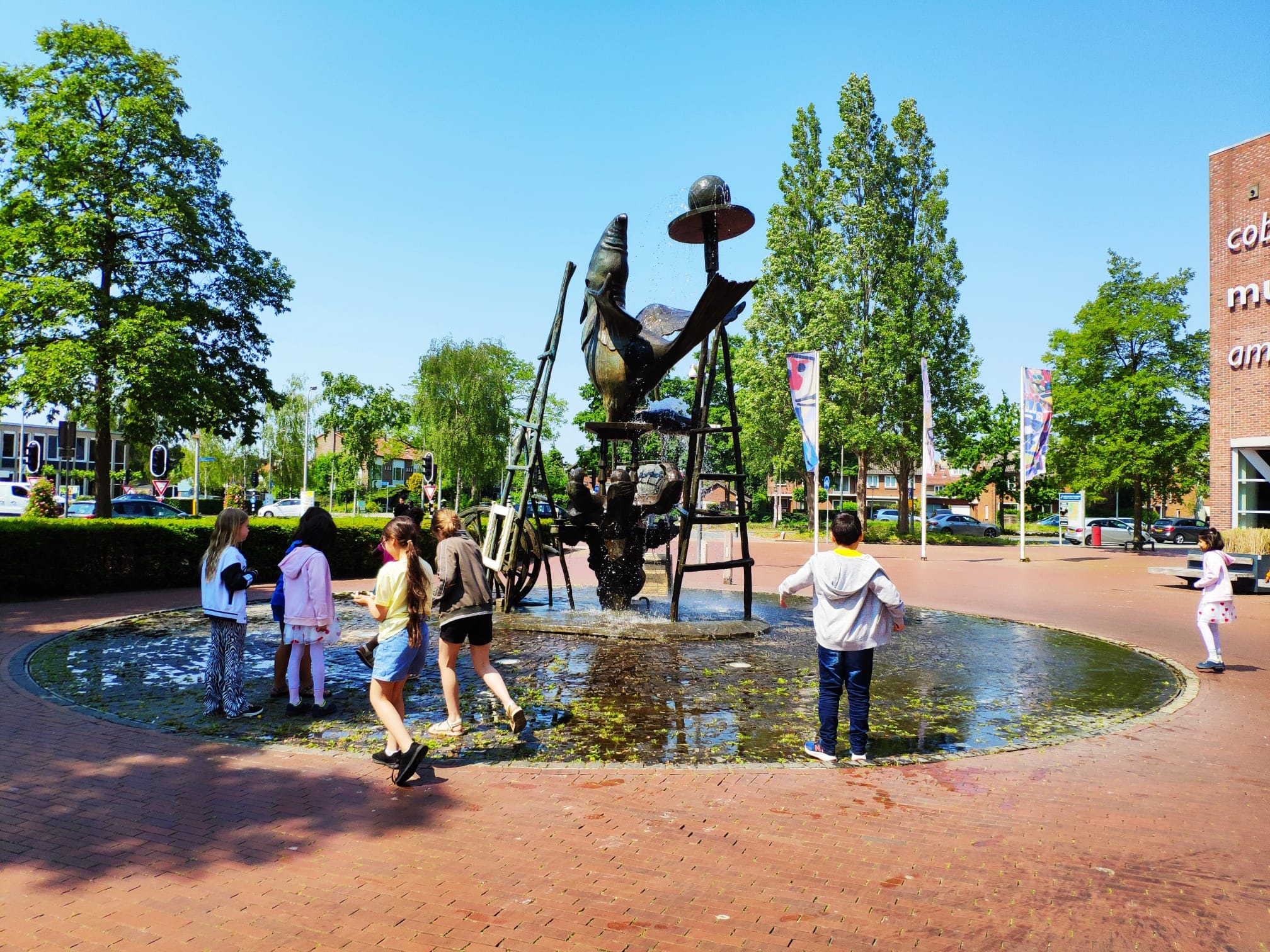 Juf Marije zauważyła, że sytuacja wymyka się spod kontroli, więc zebrała grupę: Hola, hola! wchodzimy do budynku. Celem wycieczki jest lekcja muzealna, nie kąpiel w fontannie – przypomniała.