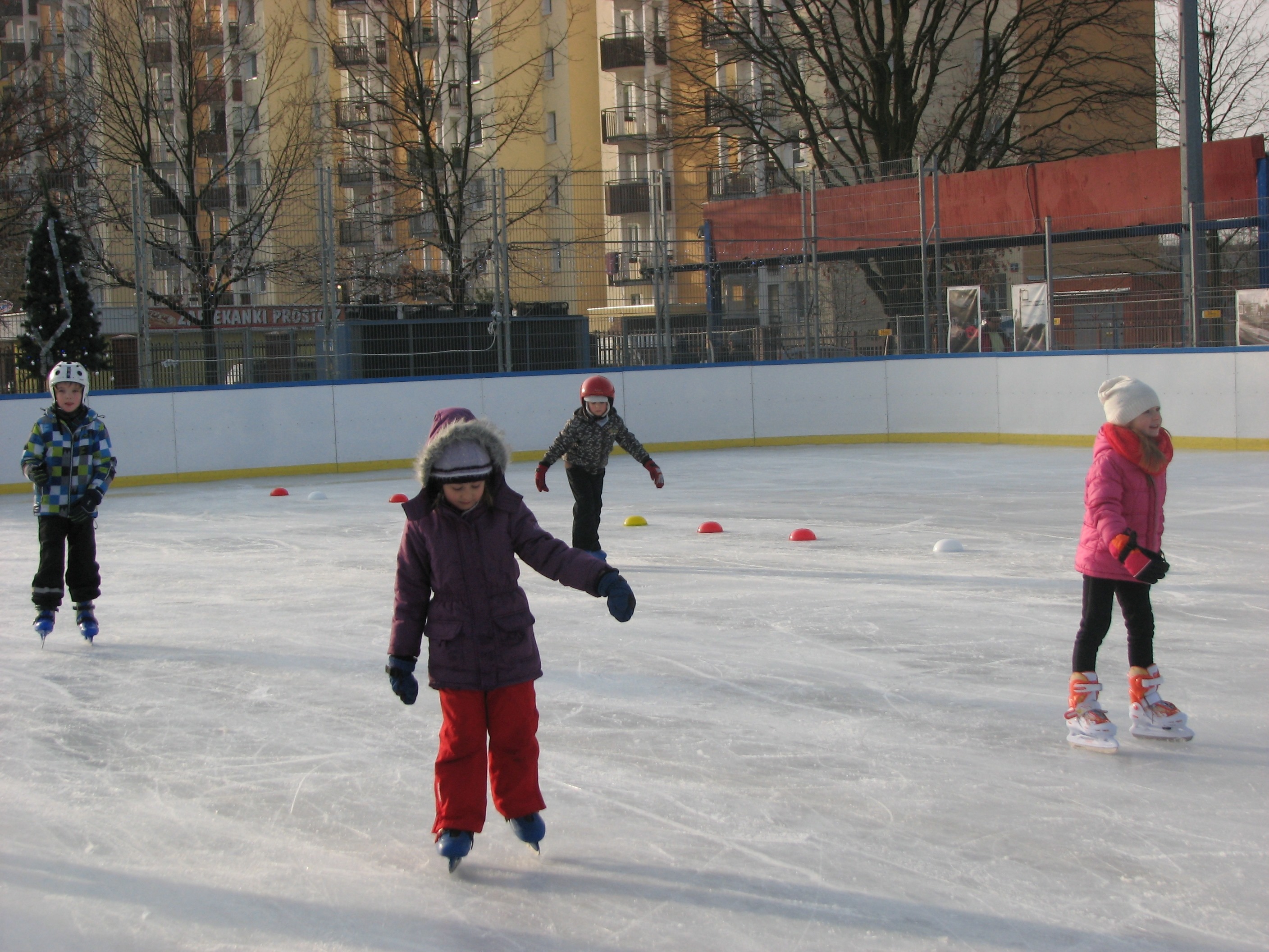 Dziecka pięć i sześć lat jeździć na łyżwach nie umiały, ale na lodowisku w niedzielne poranki odbywały się lekcje grupowe. Co prawda godzina zatarła mi się w pamięci, pozostało tylko wrażenie wczesności.