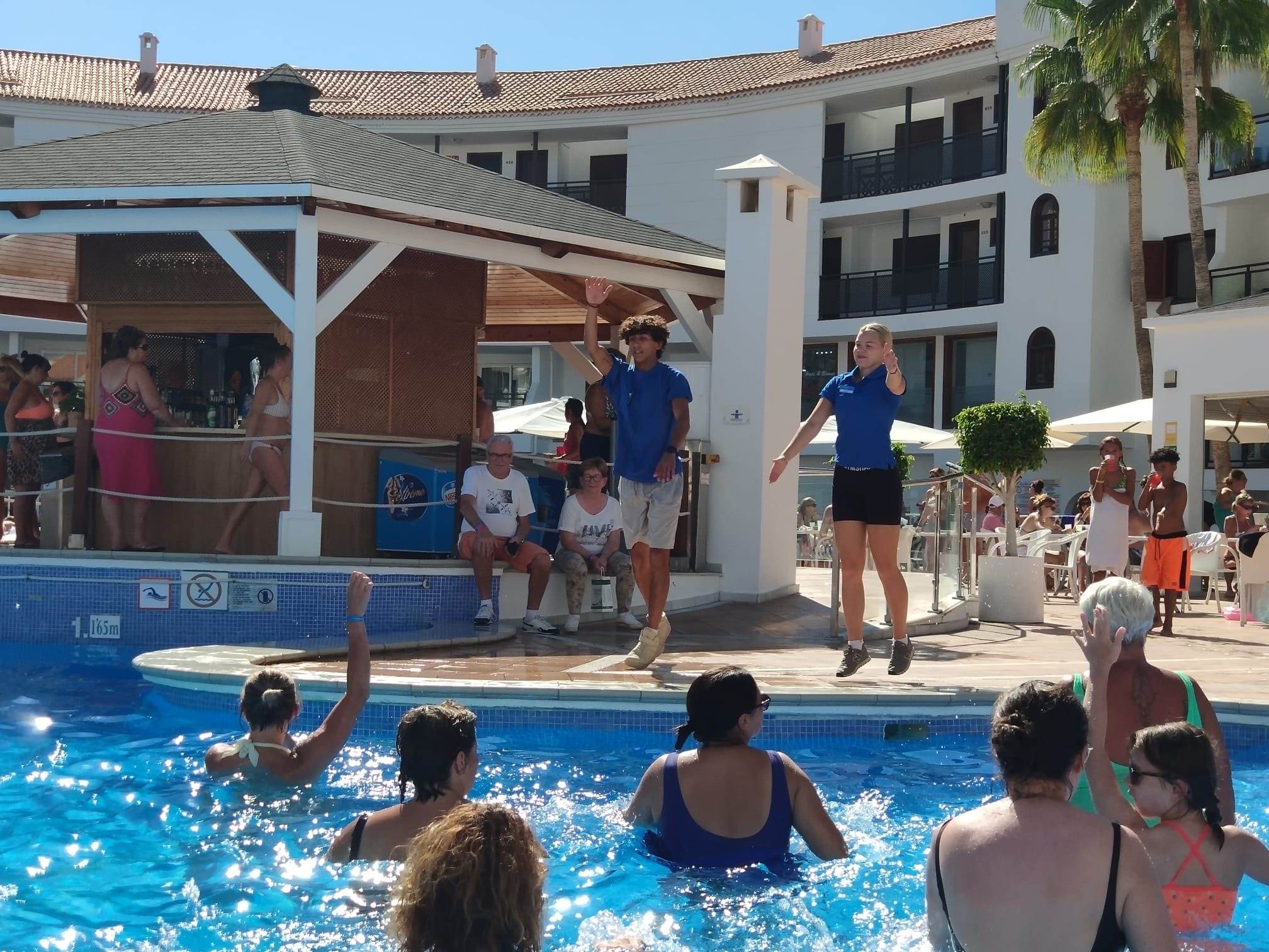 Przy basenie gra muzyka, głównie hiszpańskie i latynoskie kawałki, odbywa się pokaz mody.