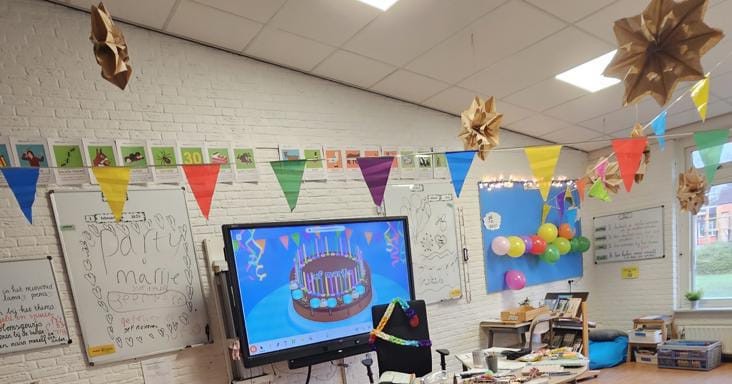A że ja akurat w piątki mam wolontariat w szkolnej bibliotece, to mogłam co nieco podejrzeć. Juf Marije z wielkim uśmiechem czekała na korytarzu, bo dzieci poprosiły ją, by wstrzymała się z wejściem do klasy, w której trwały ostatnie przygotowania.