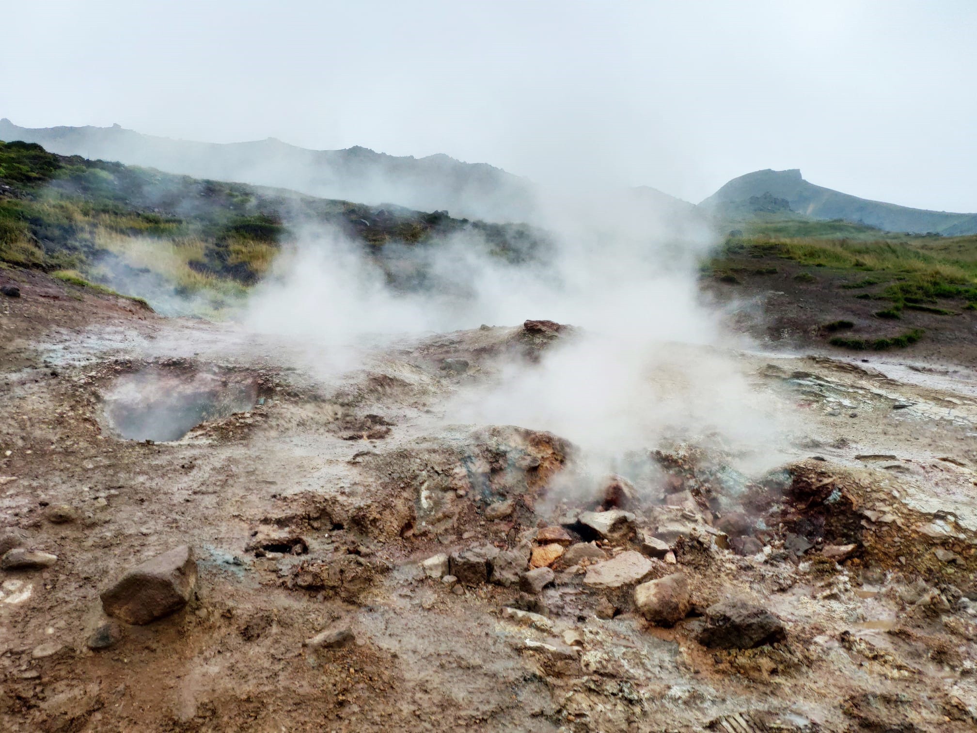 W źródełkach gulgoczą fontanny z błota. Kipi siarkowy wrzątek.