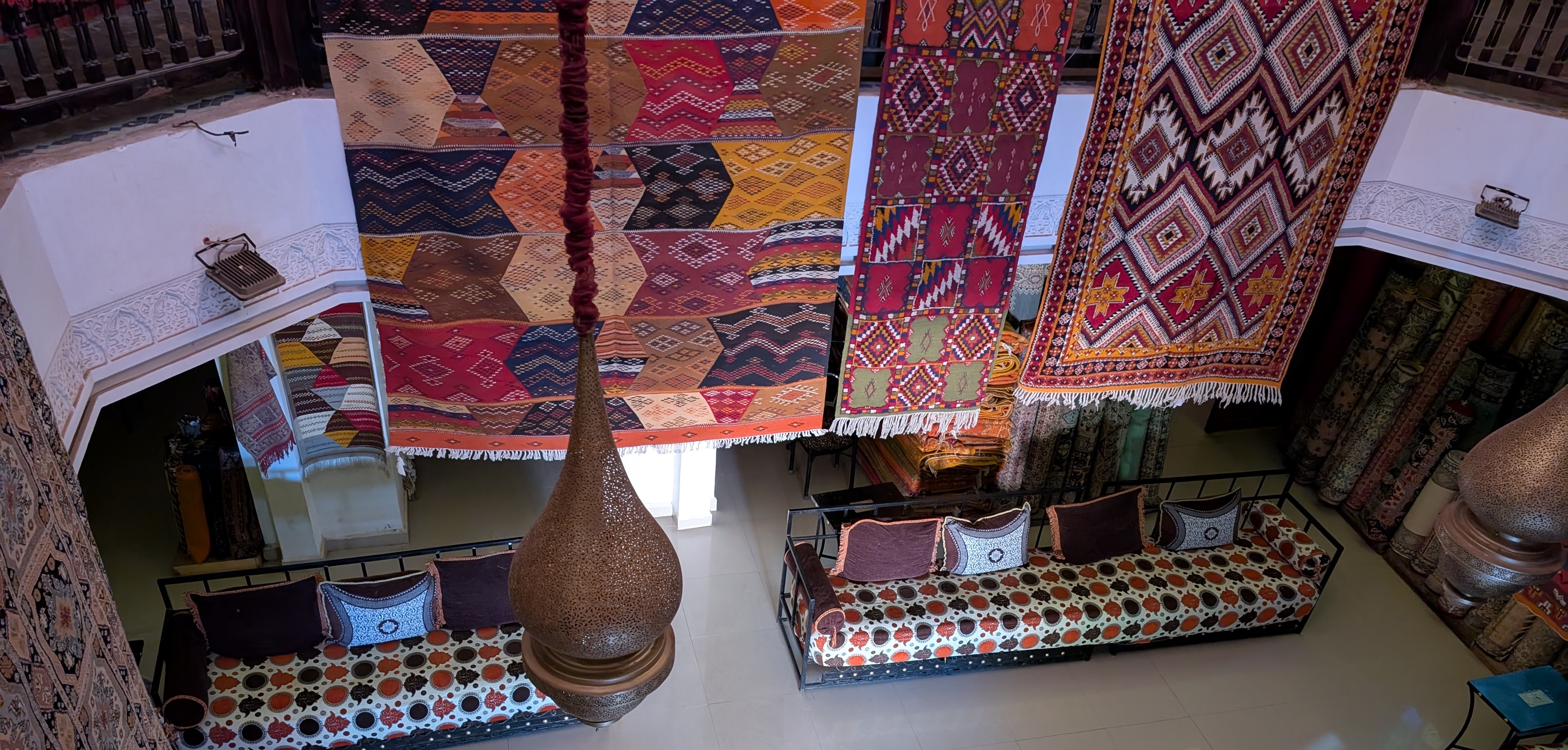 Albo mogłam nabyć choć mały chodniczek. Byłaby piękna pamiątka, marokańskie dywany naprawdę mnie zachwyciły: bordowe, karminowe, brązowe, z powtarzającymi się motywami roślinnymi, marokańską koniczyną, cudne, w dodatku każdy inny.