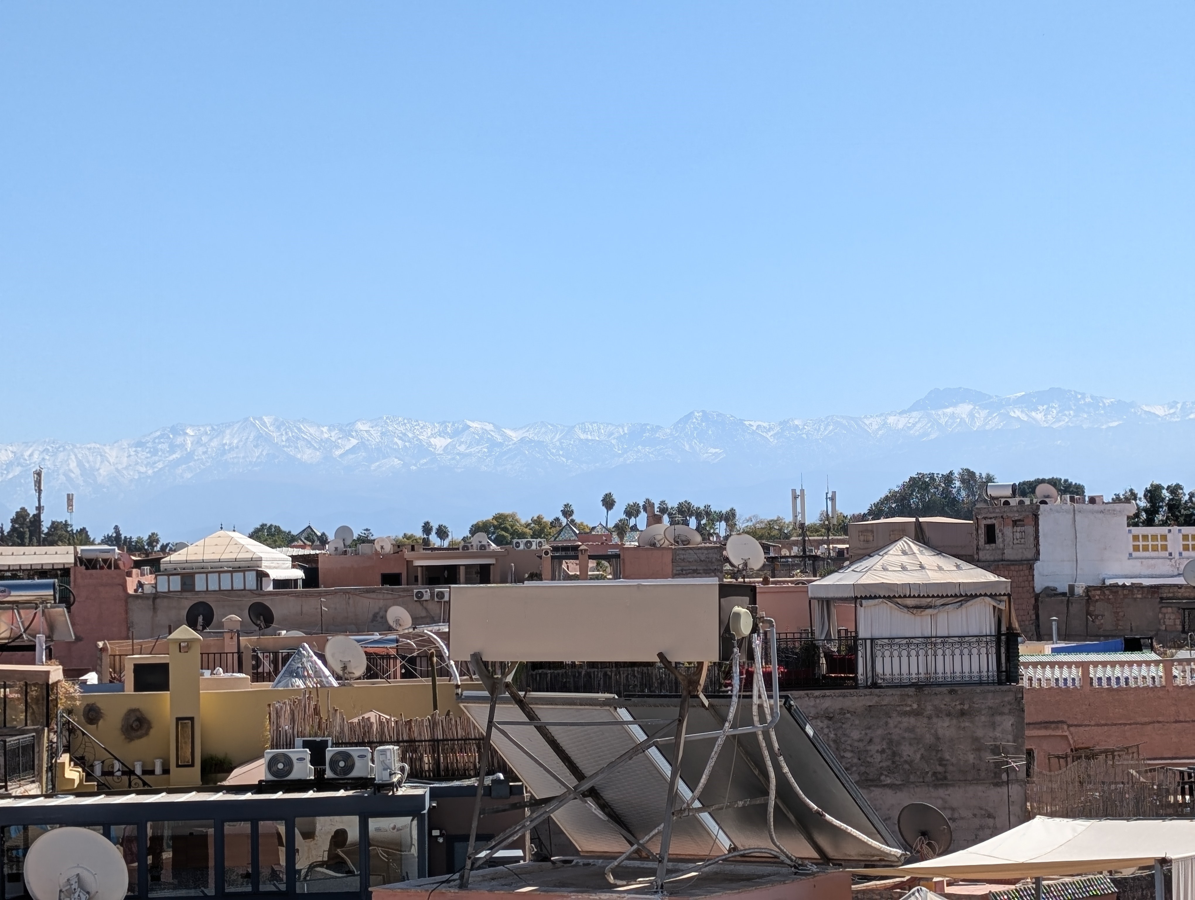 Muhammed zapowiada, że zjemy go w wyjątkowej restauracji z tarasem widokowym na miasto i góry Atlas.