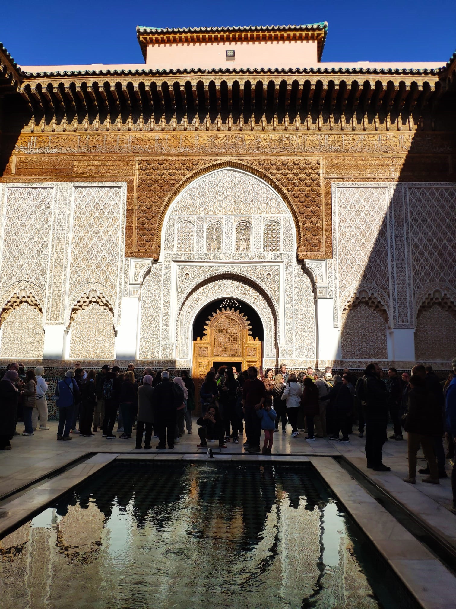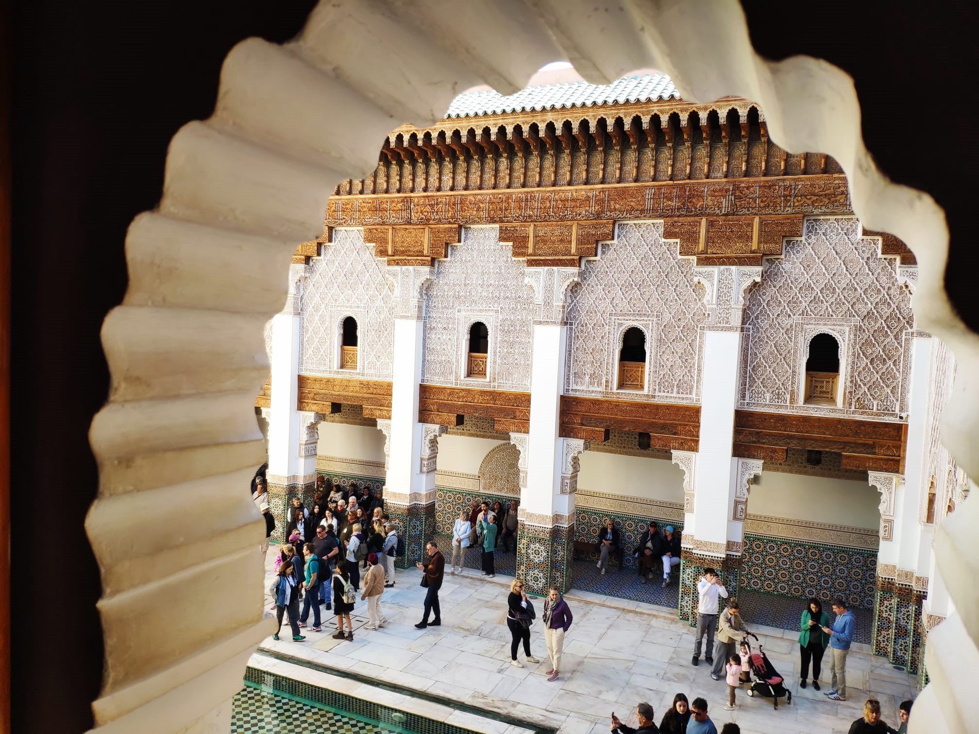 I wtedy Muhammed prowadzi nas do szkoły koranicznej, największej nie tylko w Maroku, ale też w całej północnej Afryce. Z zewnątrz jest to niewyróżniający się niczym budynek z czerwonego piaskowca, za to w środku: fiu, fiu, panie!