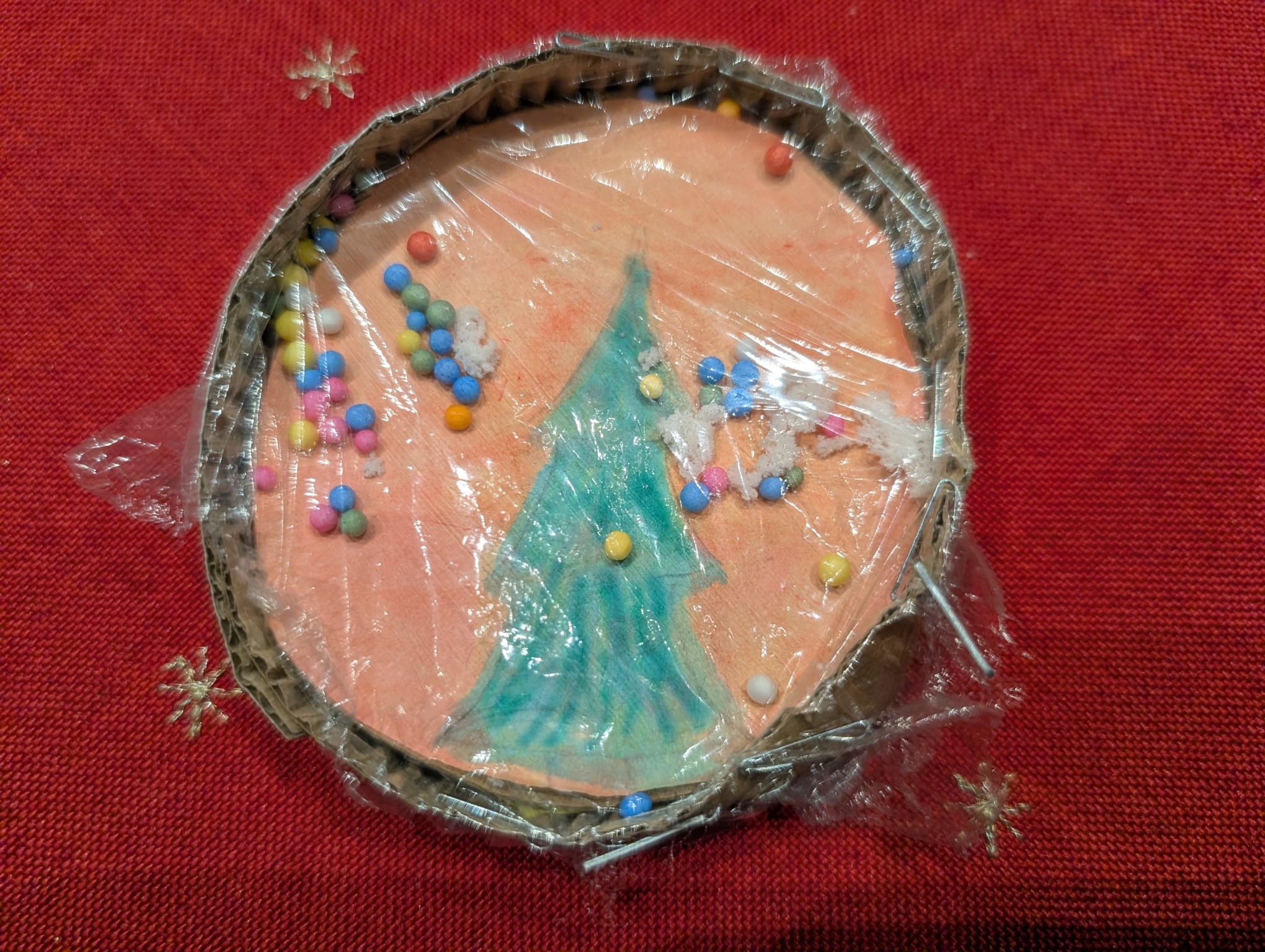Tata, od tego prawdziwego Mikołaja, dostał tusz do drukarki i torcik wedlowski, mama – krem do twarzy. Bardzo się ucieszyli i widać było, że nie spodziewali się niczego innego, tymczasem… tadam, niespodzianka! Na mamusię pod choinką czekała wykonana przeze mnie stajenka, a na tatusia – bombka!