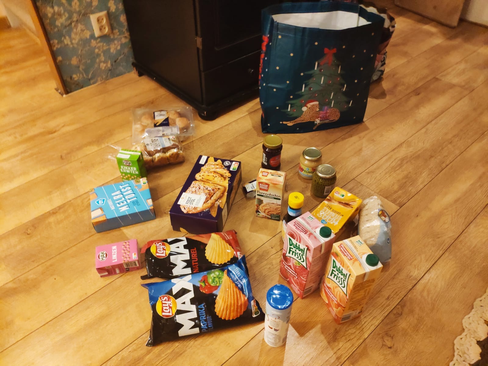 W tym roku – niespodzianka: każda rodzina dostała paczkę żywnościową od sieci supermarketów Albert Heijn.