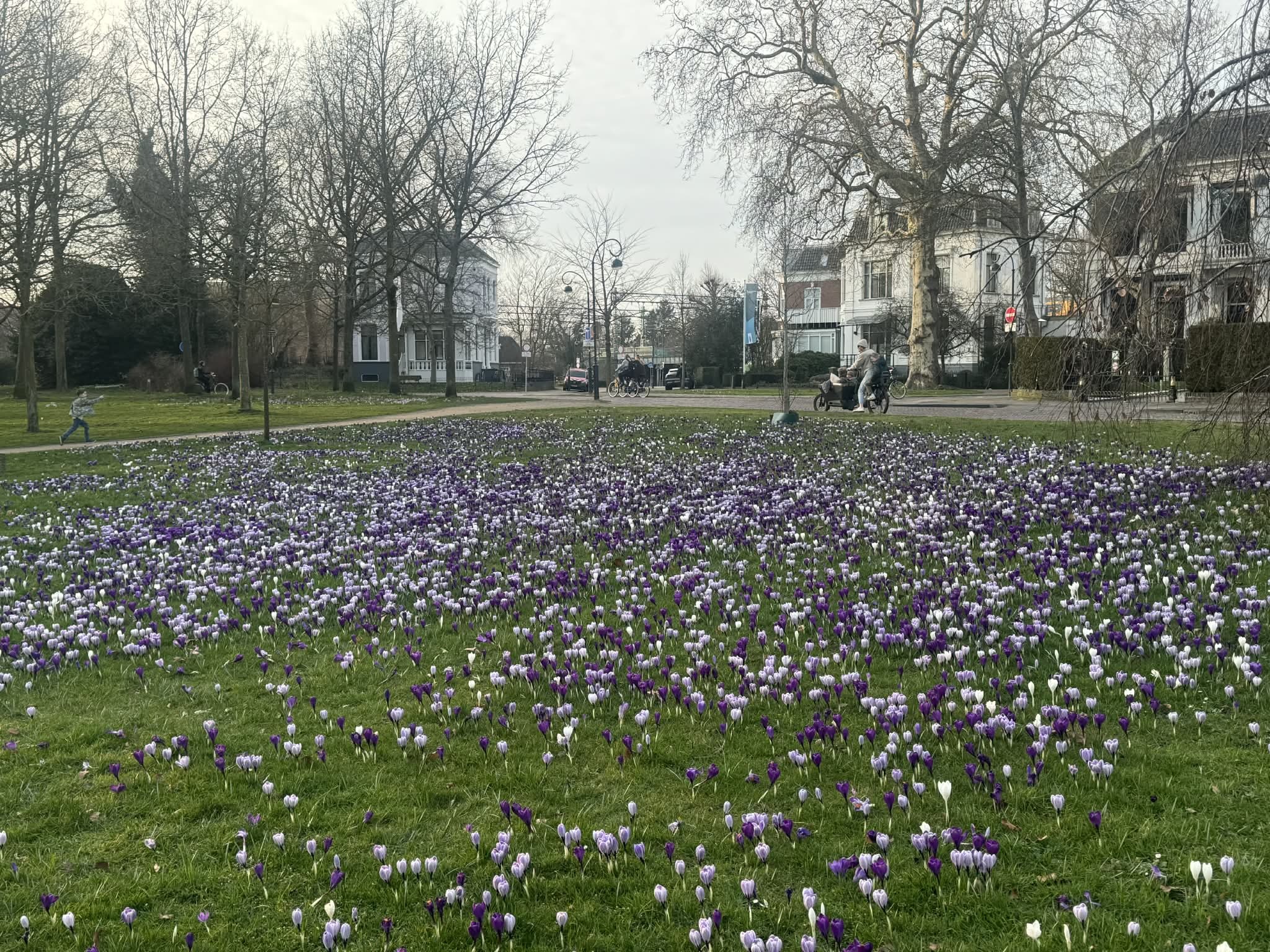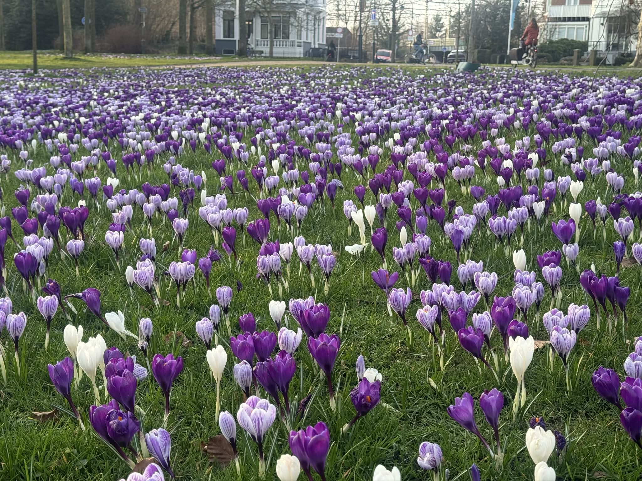 Pojechałam zatem z dziećmi na kryte lodowisko do Haarlemu. Po drodze, a konkretnie: niedaleko dworca centralnego, zauważyliśmy całe poletko fioletowych i ciemnogranatowych krokusów. Mnogość kielichów i intensywność barw, robiła wrażenie. I z pewnością zapowiadała wiosnę (bo przecież nie zimę). Winking smile