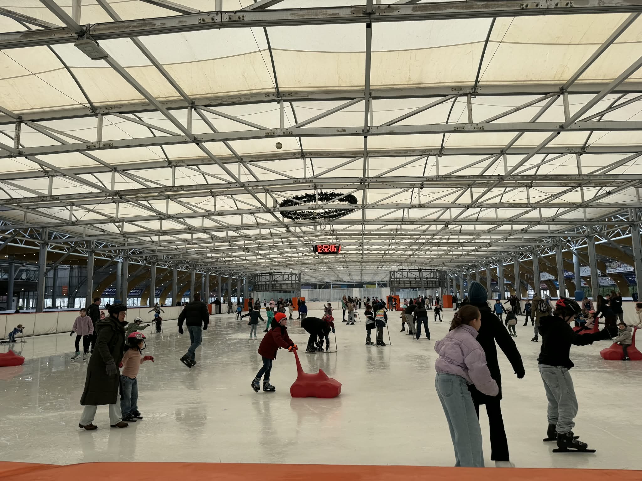 Lodowisko okazało się bardzo przyjemne i przestronne. Składa się z dwóch oddzielnych części. Wewnętrzna jest przeznaczona do nauki jazdy, zabawy i ćwiczeń. Tu można korzystać ze sprzętów pomocniczych: żelaznych podpórek, plastikowych kaczuszek.