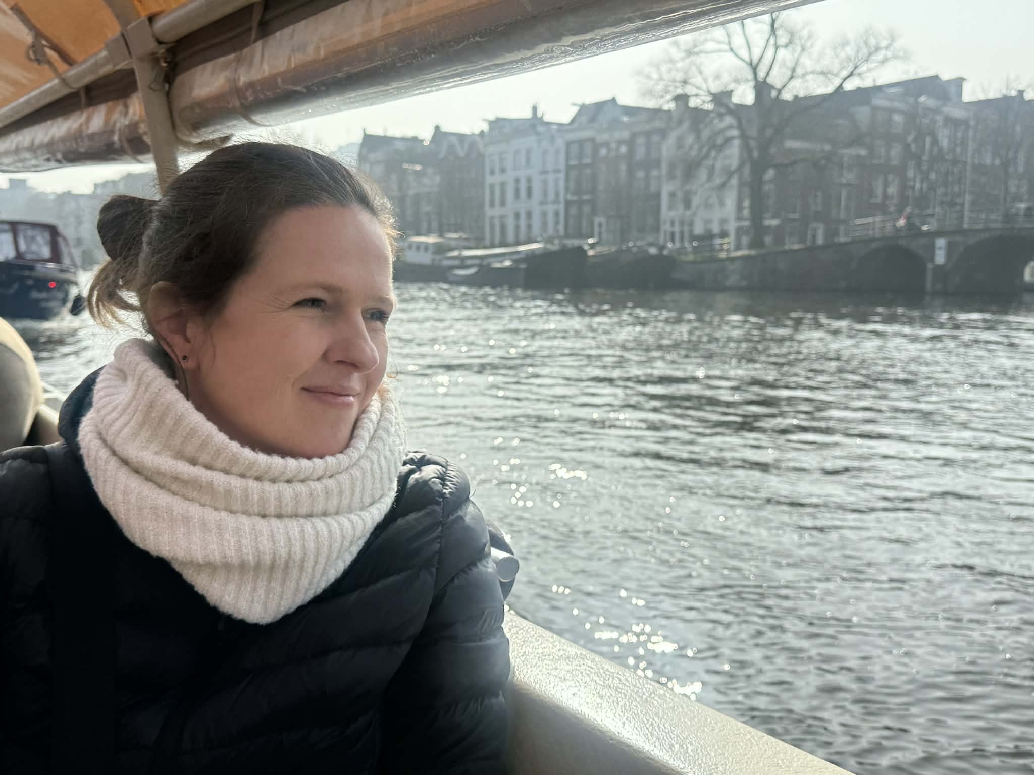Zajęłyśmy miejsca po obu stronach burty i… wypłynęłyśmy na amsterdamskie wody.